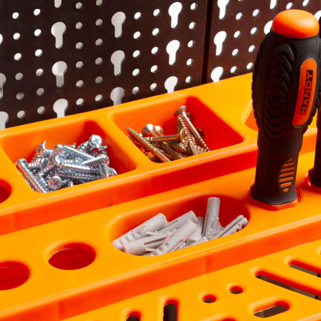 Rendszerezze szerszámait saját igényei szerint. Vessen véget a keresgélésnek a fiókba hányt szerszámok között. A fali rendszerezővel átláthatóvá válik szerszámkészlete. Kompakt és optimális elrendezést biztosít.