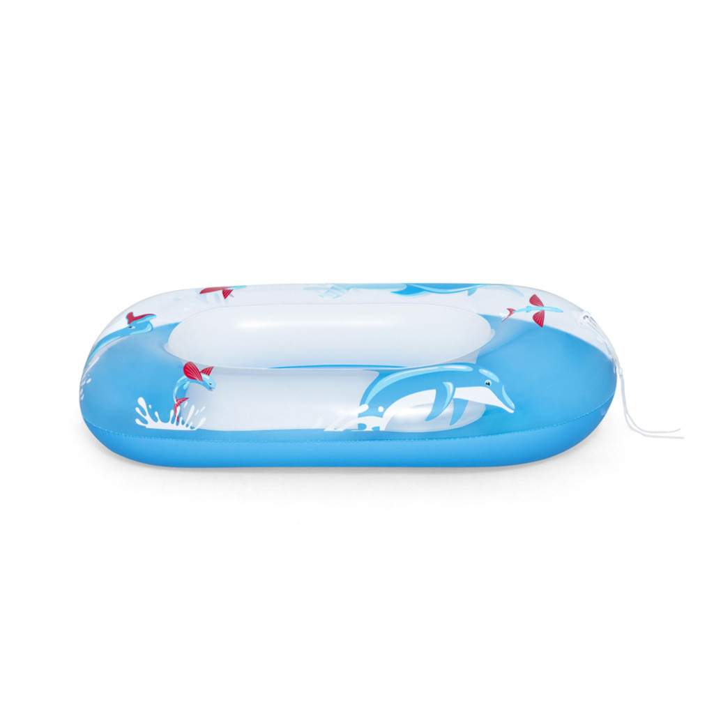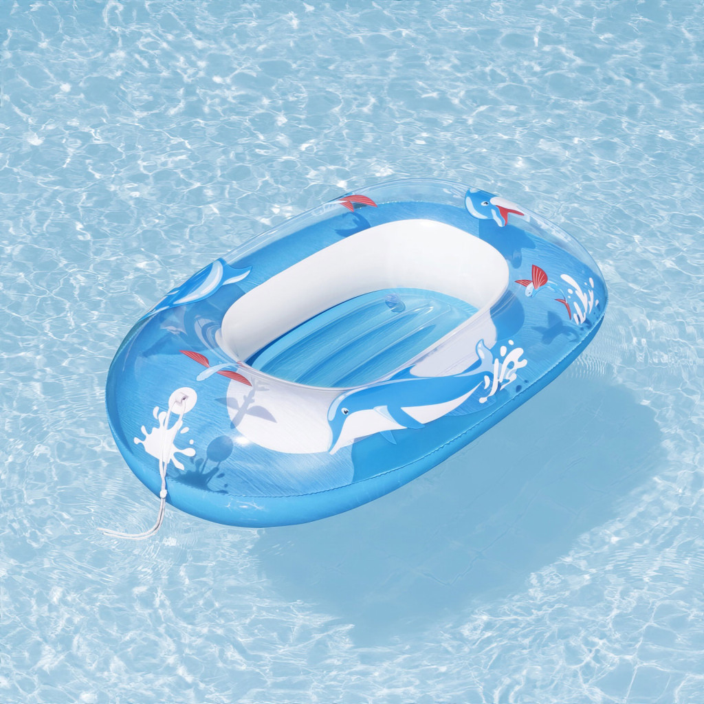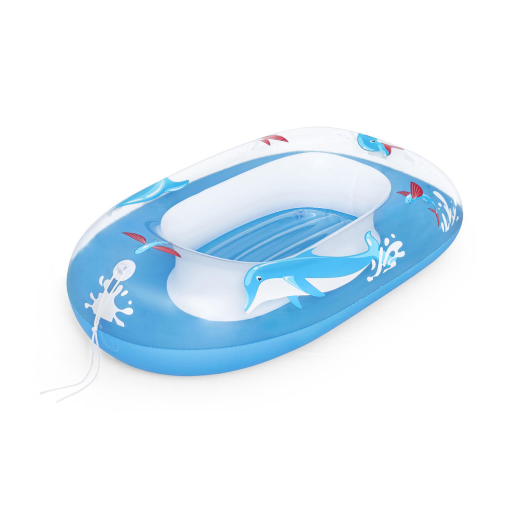 A csónak tökéletes ötlet gyermeke szórakozásához! 3 éves kortól alkalmas gyermekek számára. A vidám tengeri állatokkal díszített csónak biztosan tetszeni fog minden kicsinek. Tartós vinilből készült és biztonsági szelepekkel rendelkezik, hogy megakadályozza a levegő szivárgását. A csónak felfújható alja átlátszó ablakkal rendelkezik, ami lehetővé teszi a víz alatti világ biztonságos megfigyelését. A strandcsónak könnyű és hordozható, minimális helyet foglal, így tökéletes szórakozást nyújt a medencében, a tónál vagy a tengerparton. Az alja is felfújható, biztosítva a kiváló kényelmet a termék használata során. A csónak 3 és 6 év közötti gyermekek számára ideális választás.