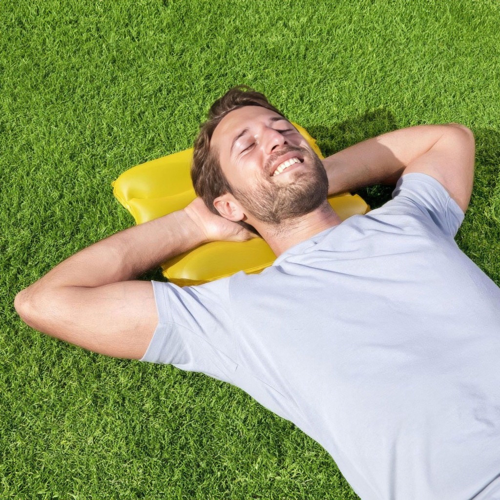 A felfújható párna nagyszerű megoldás azok számára, akik pihenésre vágynak, akár a saját kertjükben, akár a tengerparton. Nem igényel további eszközöket a felfújáshoz, könnyen felfújható és leereszthető. Kompakt méretének köszönhetően nem foglal sok helyet, így bárhová magával viheti. A termék tartós vinilből készült, amely ellenáll az apró sérüléseknek. Kényelmes pihenést és kellemes időtöltést garantál a szabadban!