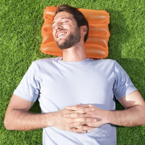 A felfújható párna nagyszerű megoldás azok számára, akik pihenésre vágynak, akár a saját kertjükben, akár a tengerparton. Nem igényel további eszközöket a felfújáshoz, könnyen felfújható és leereszthető. Kompakt méretének köszönhetően nem foglal sok helyet, így bárhová magával viheti. A termék tartós vinilből készült, amely ellenáll az apró sérüléseknek. Kényelmes pihenést és kellemes időtöltést garantál a szabadban!