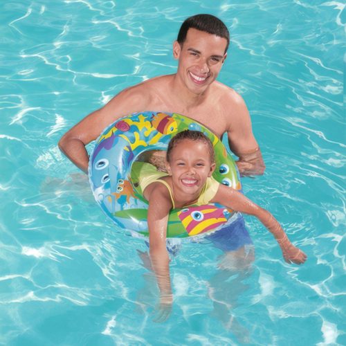 Fantasztikus kiegészítő a nyaralásához, legyen az tengerparton vagy a medencénél, egy felfújható úszógumi kiváló választás. Biztosak vagyunk benne, hogy könnyen ráveszi gyermekét a kültéri vízi tevékenységekre és kiváló biztonságérzetet ad a csobbanás alatt gyermekének. Színes motívumai miatt a gyűrű feltűnővé válik, biztosítva, hogy a használó gyermek jobban látható legyen. Tartós PVC anyagból készült, amely bőrbarát, biztonságos és ellenáll a sérüléseknek. Kompakt méretének köszönhetően, leeresztés után könnyedén belefér az utazótáskába vagy bőröndbe. Nem foglal sok helyet, így bárhová magával viheti.
