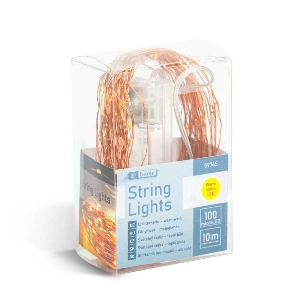 Fényfüzér - melegfehér - 100 x microLED - 10 m - 2 x AA