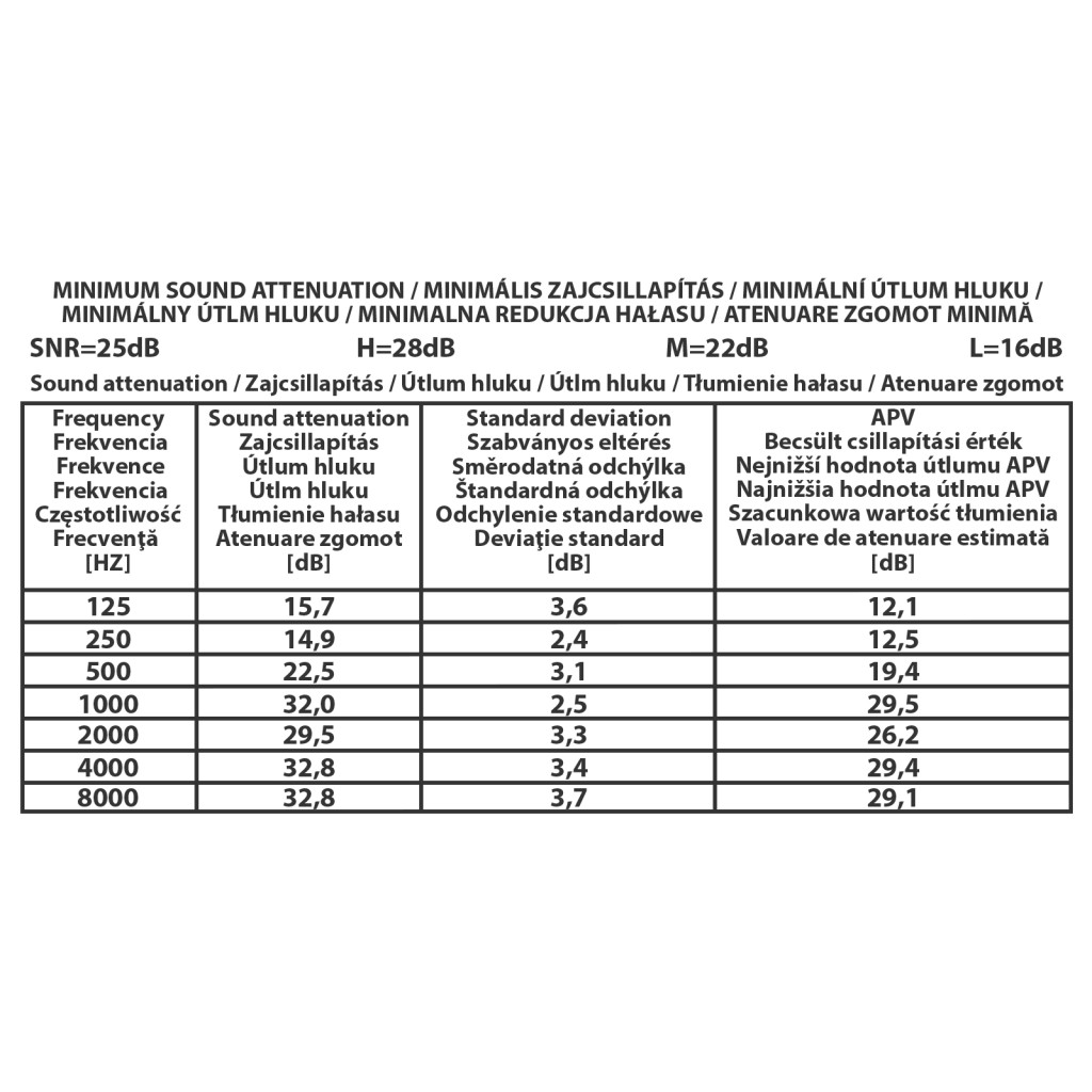 • Megfelel az EN 352-1:11.2020 fültokos hallásvédő szabványnak.