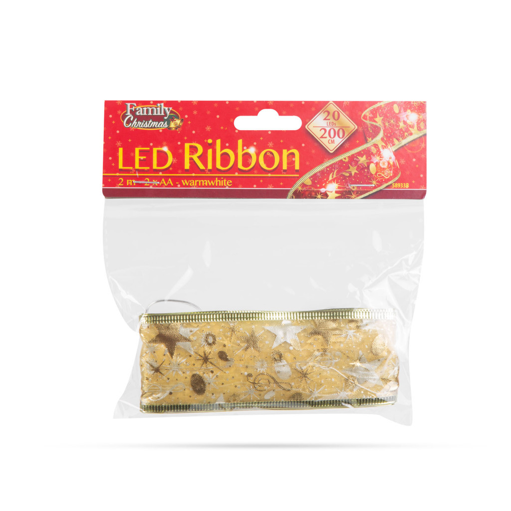 Karácsonyi LED-es szalag - arany - 2 m x 5 cm - 2 x AA