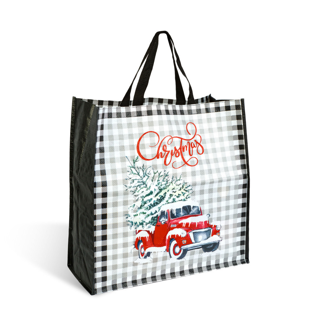 Ez a vidám, ünnepi mintás karácsonyi ajándéktáska tökéletes választás a nagyobb méretű ajándékok esztétikus és praktikus csomagolásához. Tartós, nagy teherbírású, nem szőtt, PVC anyagból készült. Erős és nagyméretű füleinek köszönhetően kényelmesen hordozható még nehezebb terhek esetén is.