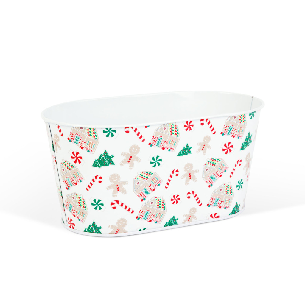 Ez a vidám, mézeskalács házikó mintás karácsonyi fém kosár tökéletes választás az ünnepi időszakra! Használhatja sütemények, apró ajándékok, édességek vagy akár dekorációk tárolására is. A tartós, fém anyag strapabíróvá teszi, a színes mintázat pedig, ünnepi hangulatot teremt. Elhelyezhető asztalon, polcon vagy komódon – bárhol jól mutat!