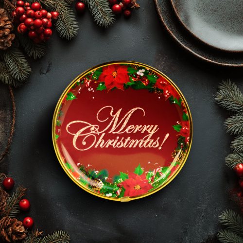 Karácsonyi kínálótál - műanyag - "Merry Christmas" - 22 cm