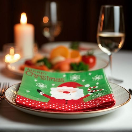 Tegye még hangulatosabbá az ünnepi terítéket ezzel a vidám Mikulás mintás papírszalvétával! A karácsonyi szalvéták nemcsak dekoratívak, hanem praktikusak is az ünnepi étkezések során. A csomag 16 darab papírszalvétát tartalmaz, amelyek tökéletesek karácsonyi vacsorákhoz, családi összejövetelekhez, sütemények felszolgálásához. A vidám Mikulás dizájn garantáltan mosolyt csal minden vendég arcára.