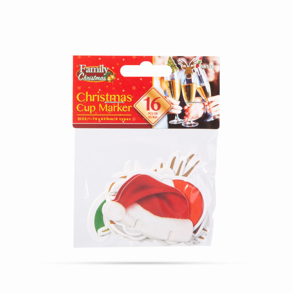 Karácsonyi pohárjelölő dekoráció - 8 féle - 16 db / csomag