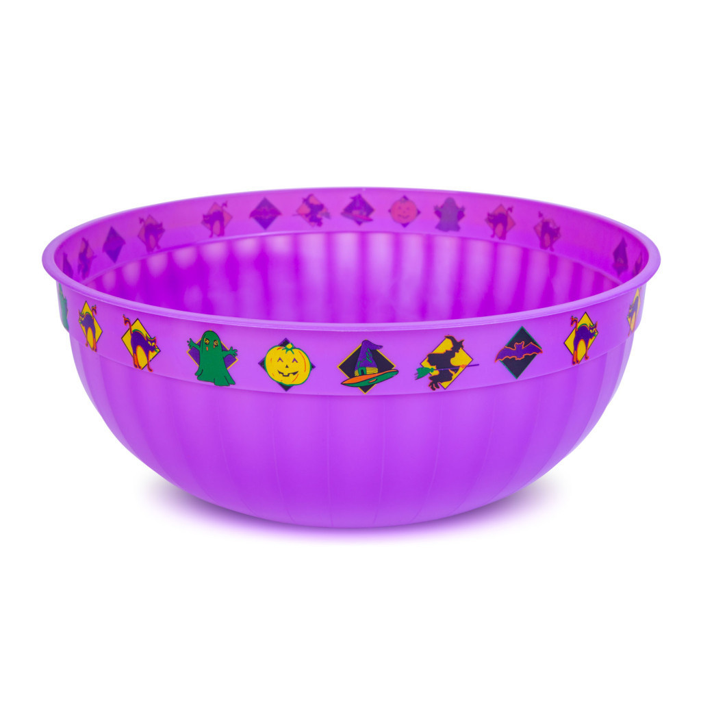 Nagyméretű, kör alakú, peremén Halloween-i motívumokkal díszített kínálótál. Kiváló választás "csokit vagy csalunk" események alkalmával vagy, ha szeretné feldobni a halloweeni asztali dekorációt! A kínálótálba mérete miatt sokminden elfér, legyen szó édességekről vagy akár gyömölcsökről. A színe és formája miatt garantáltan fel fogja hívni a vendégek figyelmét. A rugalmas, mégis strapabíró tál BPA mentes műanyag anyagból készült, amely biztonságos használatot és könnyű tiszíthatóságot biztosít.
