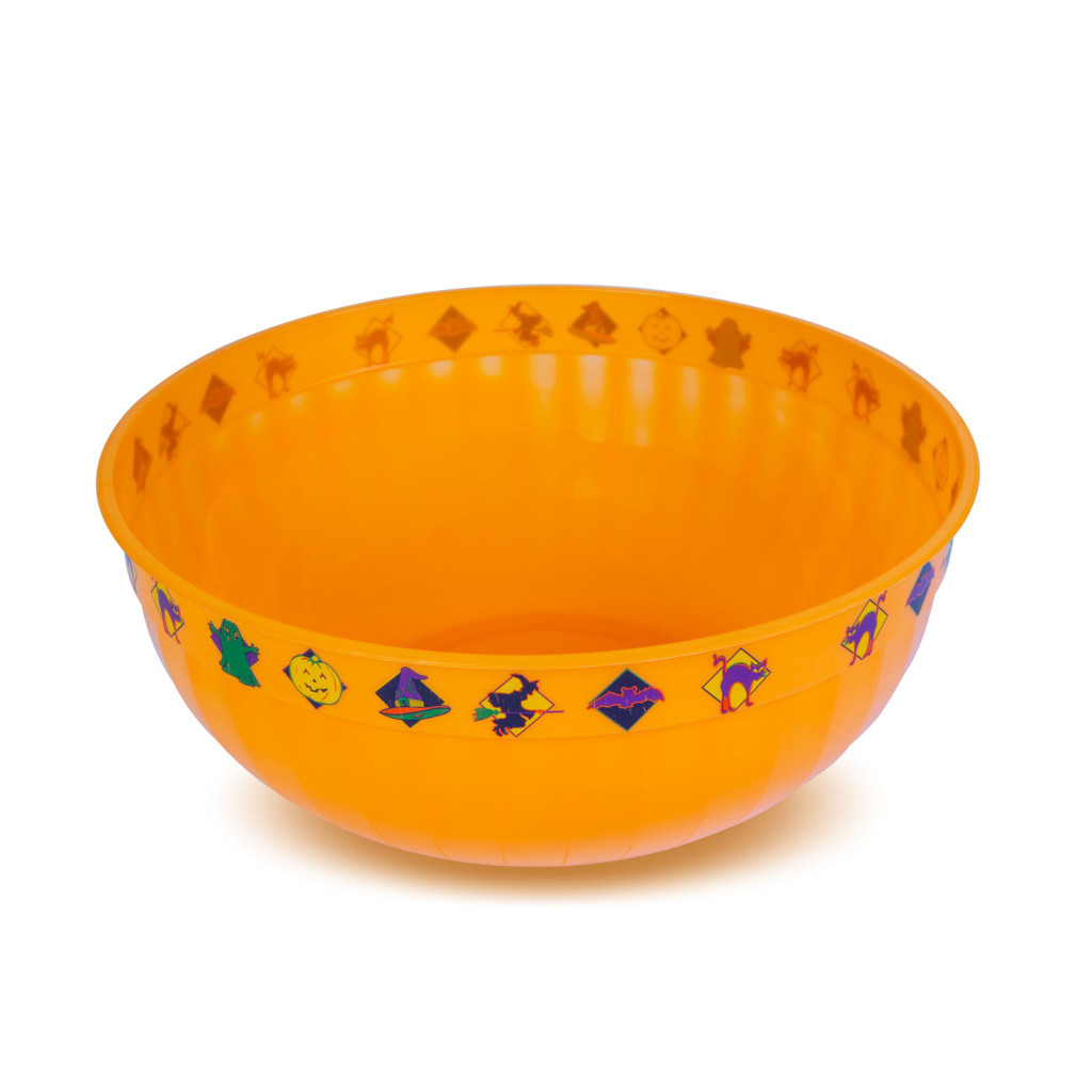 Nagyméretű, kör alakú, peremén Halloween-i motívumokkal díszített kínálótál. Kiváló választás "csokit vagy csalunk" események alkalmával vagy, ha szeretné feldobni a halloweeni asztali dekorációt! A kínálótálba mérete miatt sokminden elfér, legyen szó édességekről vagy akár gyömölcsökről. A színe és formája miatt garantáltan fel fogja hívni a vendégek figyelmét. A rugalmas, mégis strapabíró tál BPA mentes műanyag anyagból készült, amely biztonságos használatot és könnyű tiszíthatóságot biztosít.