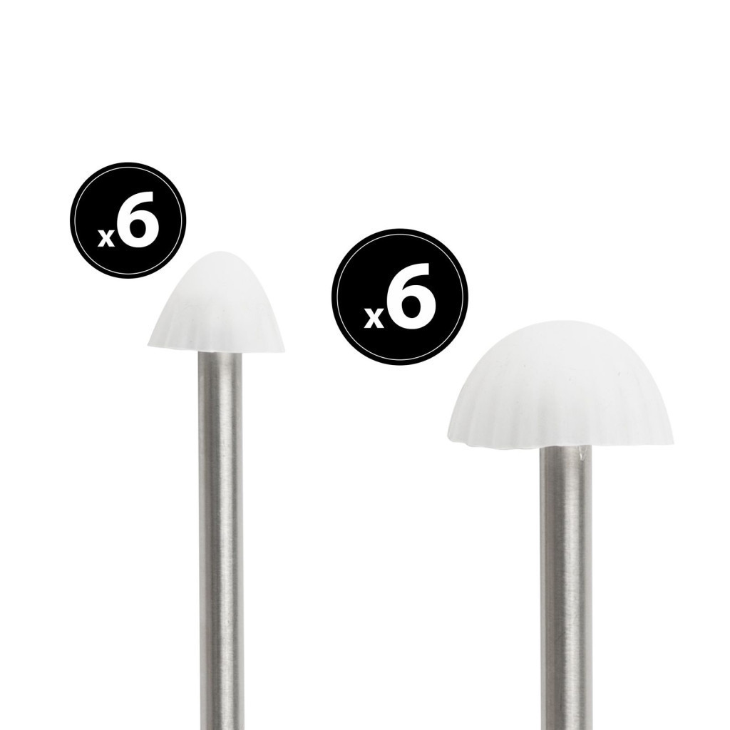 12 mini gombából álló napelemes lámpa szett, amely varázslatos hangulatot teremt bármely kertben. Egyszerűen szúrja le az Önnek tetsző magasságban a napelemes központi egységet és a mini gombákat. A szolár paneles egység a rejtett elhelyezés érdekében 100 cm kábellel rendelkezik, míg a gombák között 20 cm kábel áll rendelkezésre. A gombák különböző méretű szilikon fejekkel és 1-1 db melegfehér LED-del rendelkeznek. A fények szürkületkor automatikusan bekapcsolnak, reggel pedig ki. A gombák kétféle üzemmódban használhatóak: szürkület után folyamatosan világítanak vagy villognak.