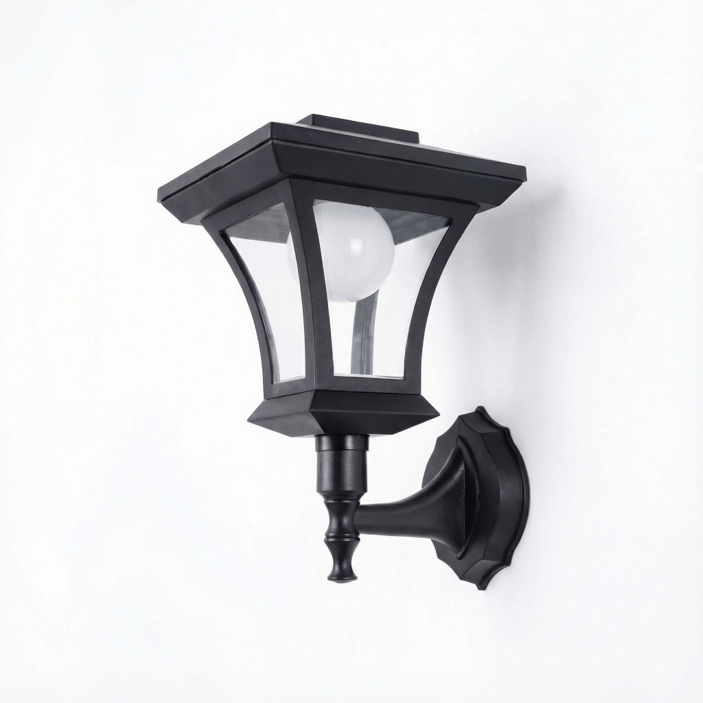 LED-es szolár lámpa - fali - 21 x 21 cm - 8 LED - fekete - melegfehér