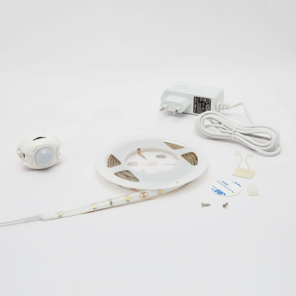 A LED szalag mozgás hatására sötétben felkapcsol, a mozgásérzékelő szenzornak köszönhetően. A szenzor 30 másodperc és 10 perc közötti időintervallum között állítható, kiválasztva a felkapcsolódás után elérni kívánt világítás időtartamát.
