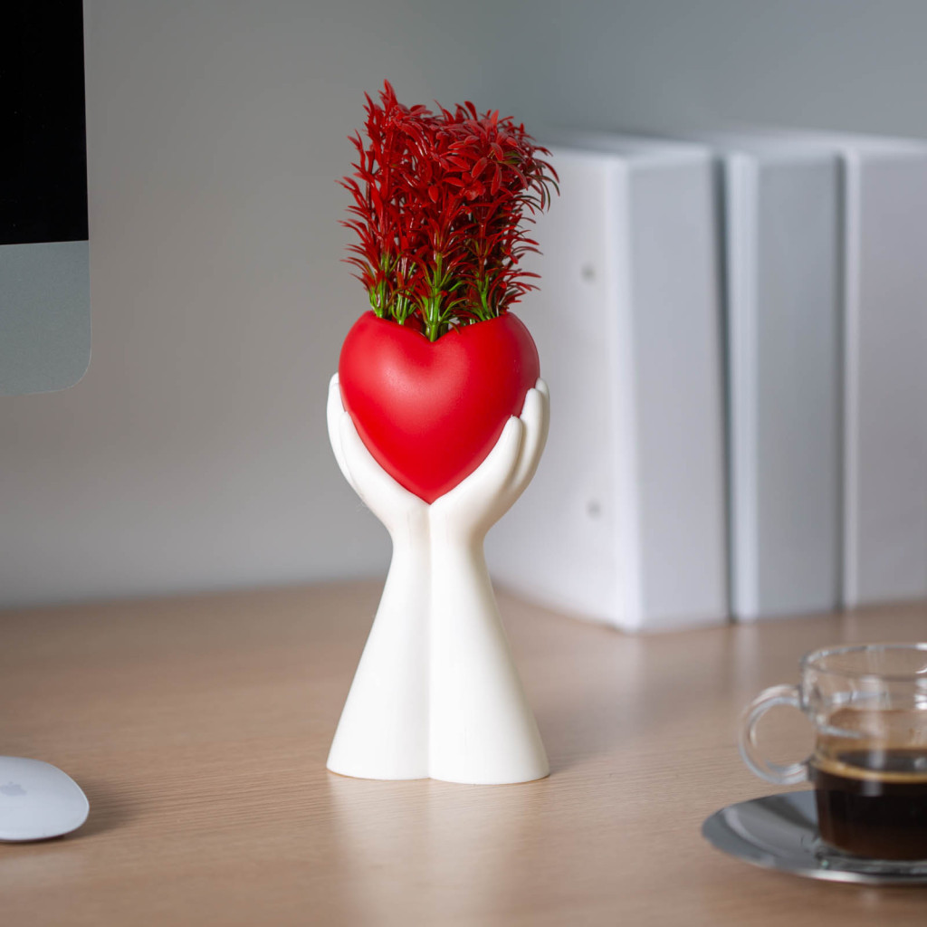 Műnövény dekoráció - piros, szív - 10 x 35 cm