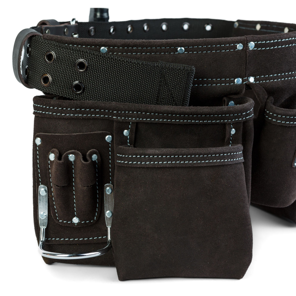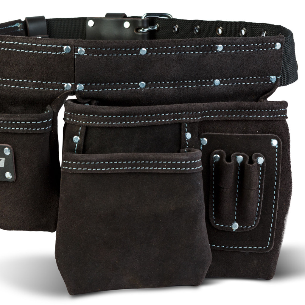 Professzionális bőr szerszámtartó öv - 7 zseb, 1 kalapácstartó, 4 ceruzatartó