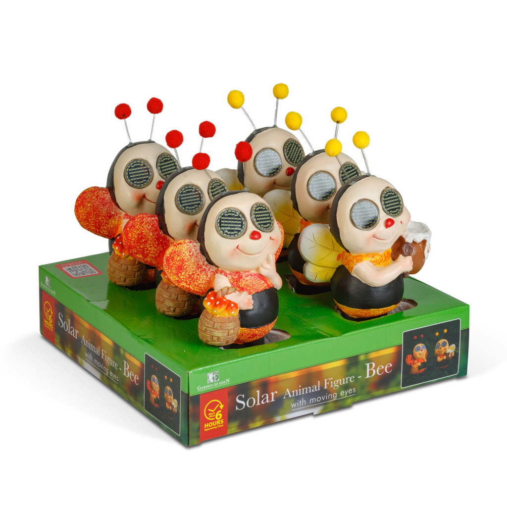 Ez a játékos megjelenésű szolár méhecske figura különleges látványt nyújt a kertben vagy a teraszon, köszönhetően a mozgó LED szemeinek és az erőteljes, 112 darab SMD LED-ből álló világításnak. A beépített napelem napközben feltölti az újratölthető akkumulátort, így sötétedés után automatikusan bekapcsol. Kétféle színváltozatban – piros és sárga – érhető el. A műgyanta és műanyag anyaghasználat biztosítja, hogy időjárásálló legyen, így hosszú távon is használható a szabadban.