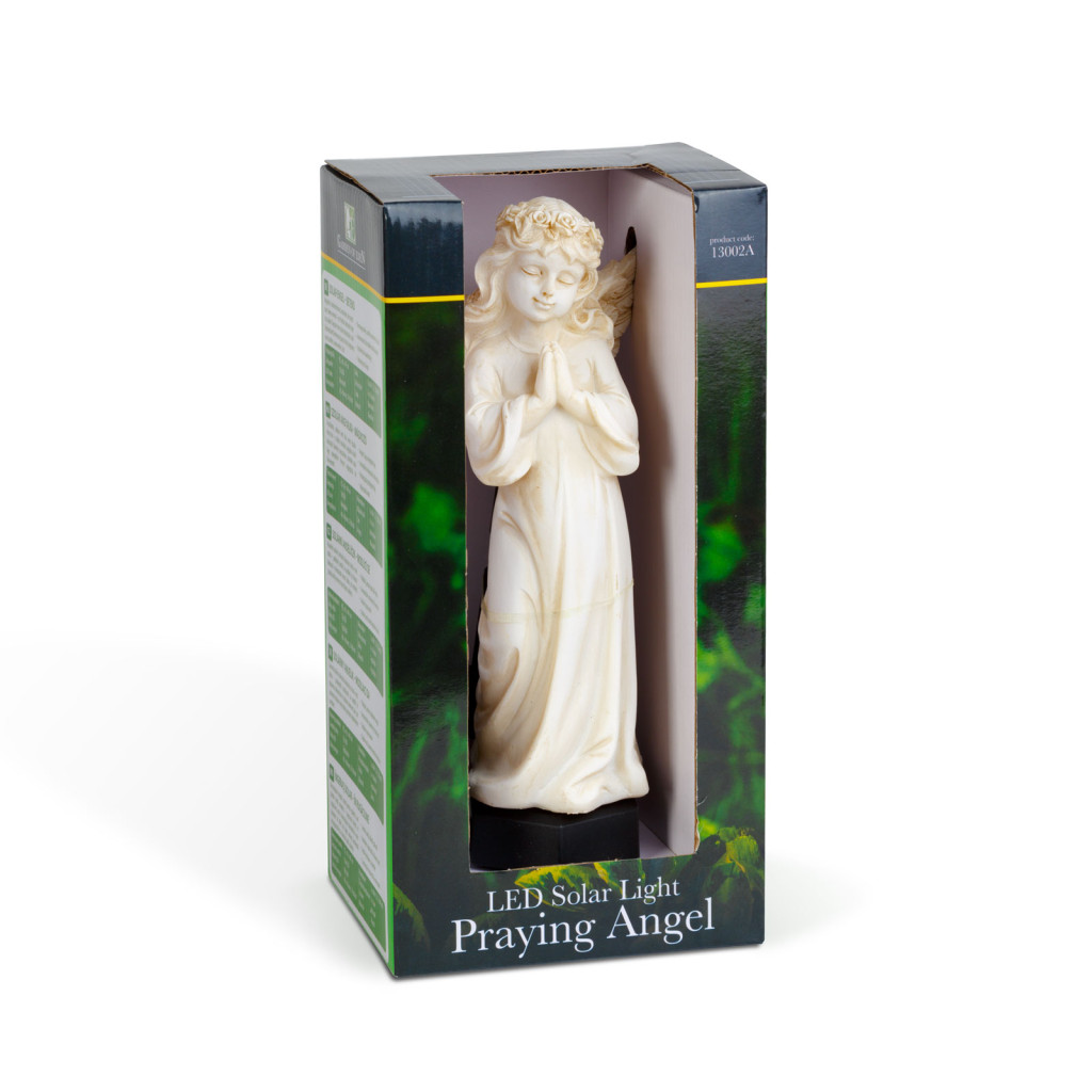 Varázslatos, szolár kerti dísz, mely éjszaka életre kel – a békés imádkozó angyalka kiváló dekoráció bármely napszakban, szürkület után lágy melegfehér fénnyel ragyogja be környezetét.