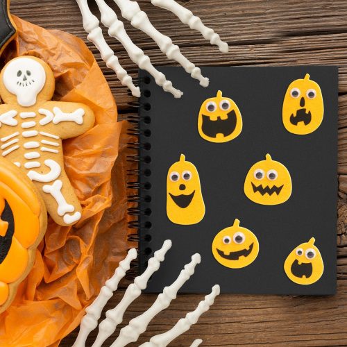 Textil matrica dekoráció - mozgó szemekkel - tök - 10 db / csomag