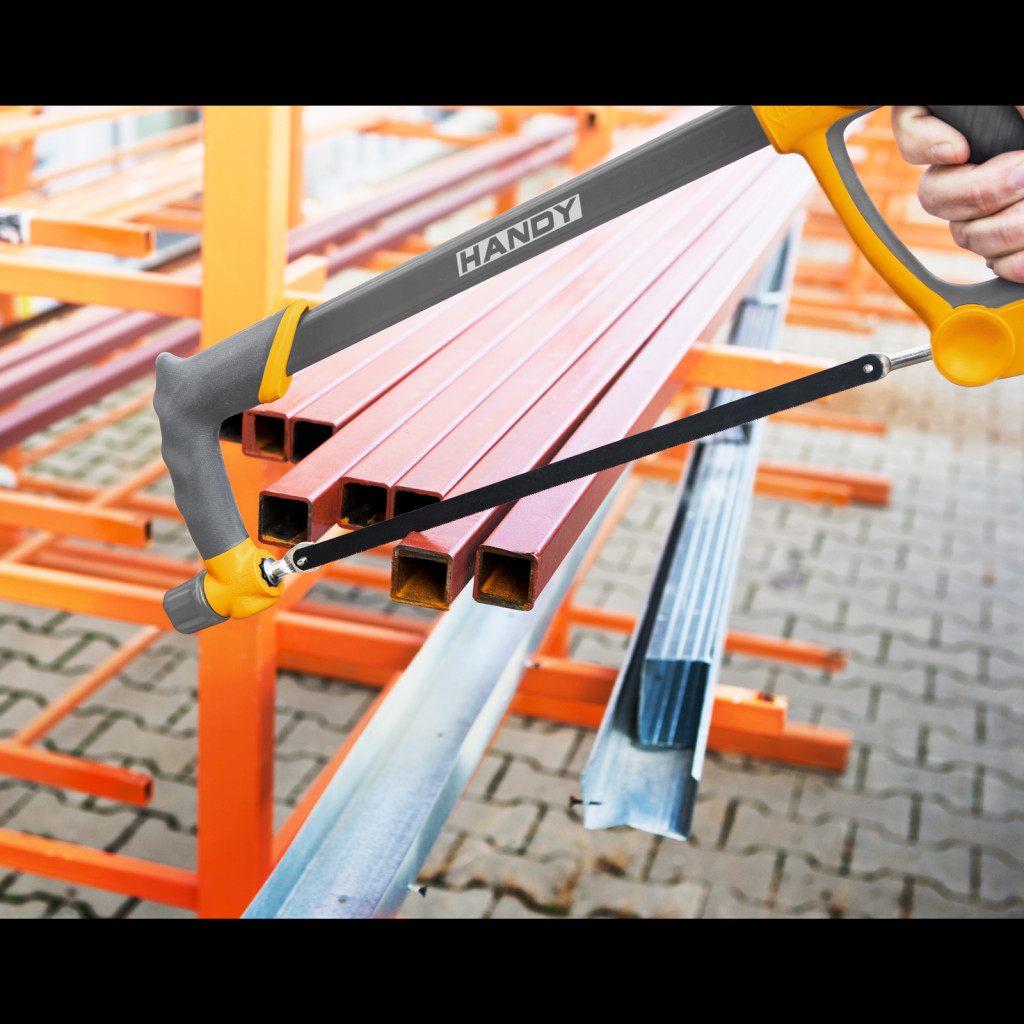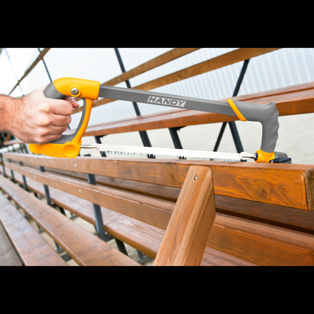 Formatervezett markolattal szerelt kézifűrész. Gyors és pontos vágást biztosító rugalmas fűrészlappal és edzett fogakkal rendelkezik. Alkalmas mindenféle faanyag és fém vágására.