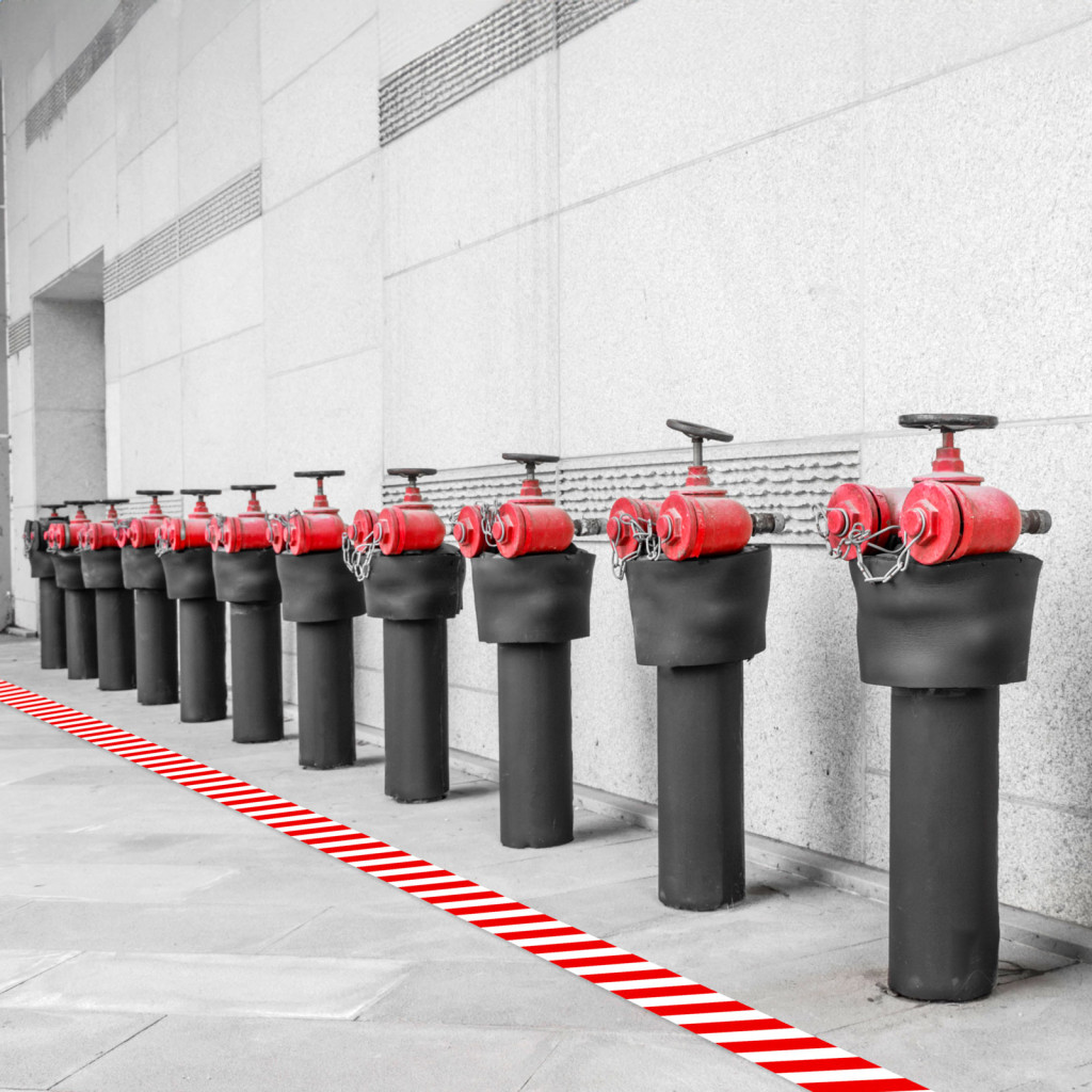 Veszélyt jelző ragasztószalag - piros / fehér - 50 mm x 33 m