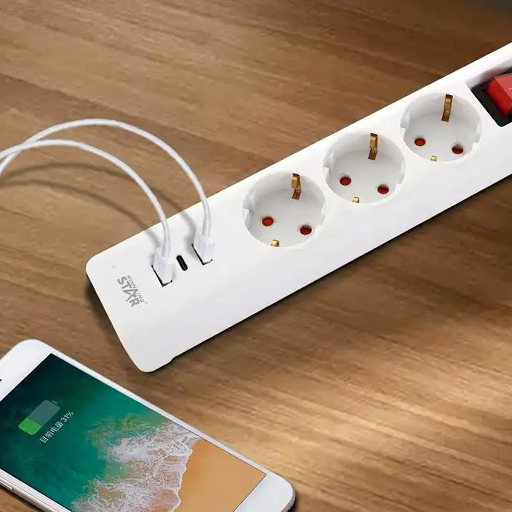 WinningStar - 3 az 1 -ben Elosztó - 3-as kapcsolós + 2 x USB + 1 x C-type - 3 m