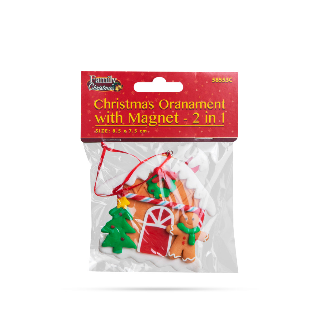 Karácsonyi mágneses dekoráció - 2 az 1-ben - mézeskalács házikó mézivel - 85 x 75 mm